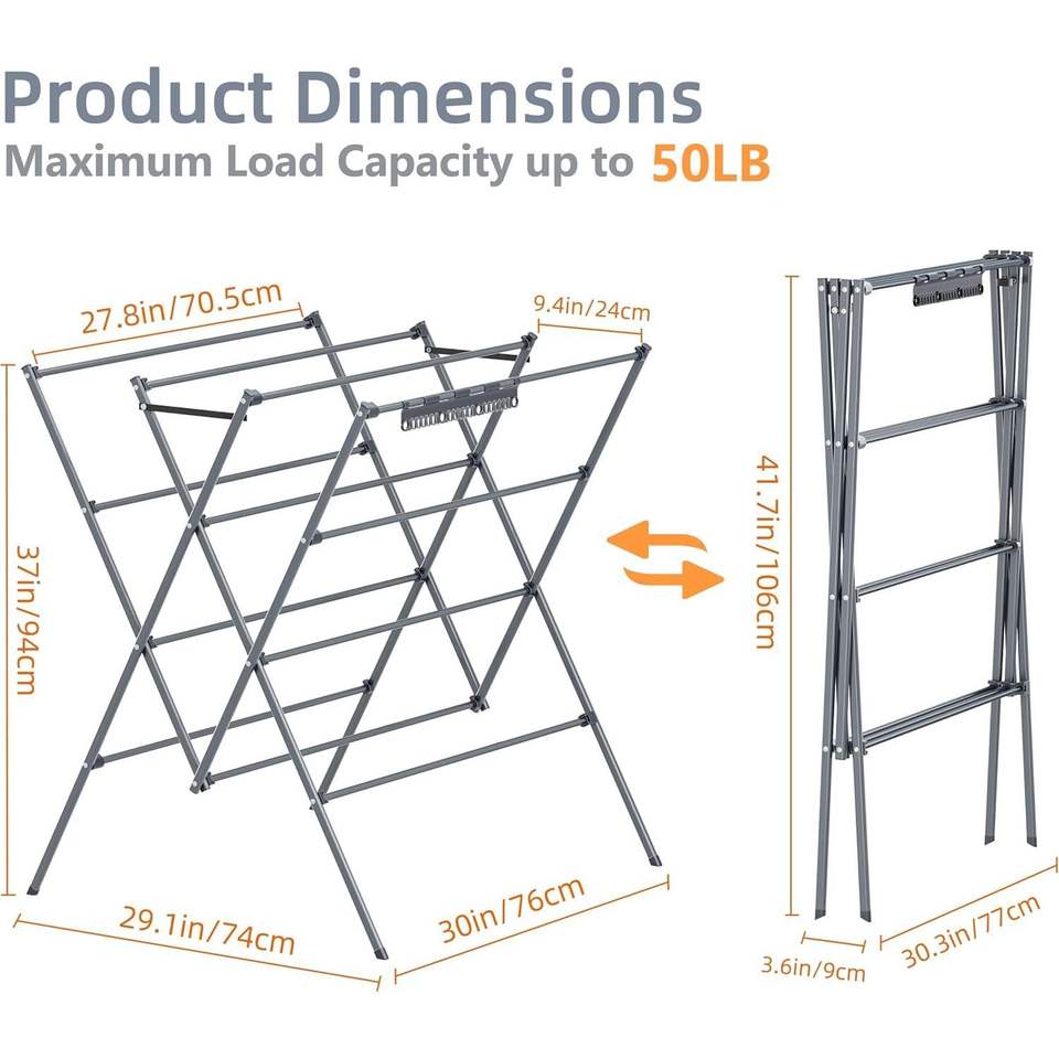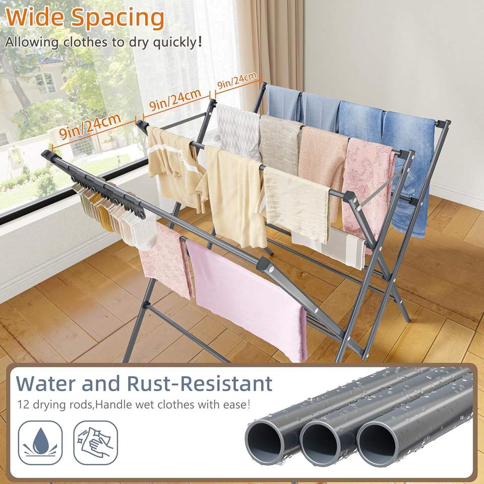 Tendedero Plegable Portátil Grande de 12 Varillas con Pinzas para Secar Ropa y Calcetines