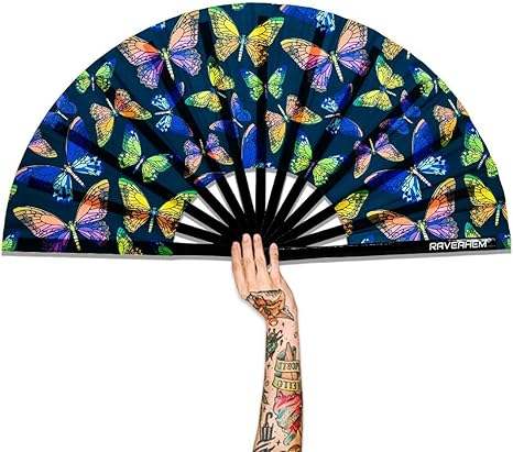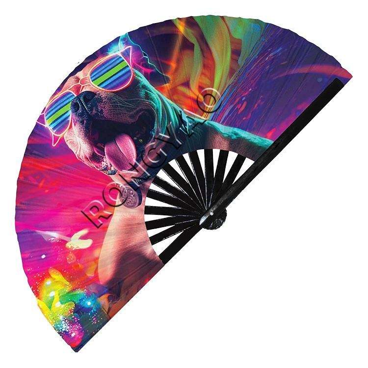 Abanico de Mano Grande de Bambú de 33 cm con Decoración Pintada para el Hogar, Negocios o Regalo Promocional, Recuerdo Hecho a Mano