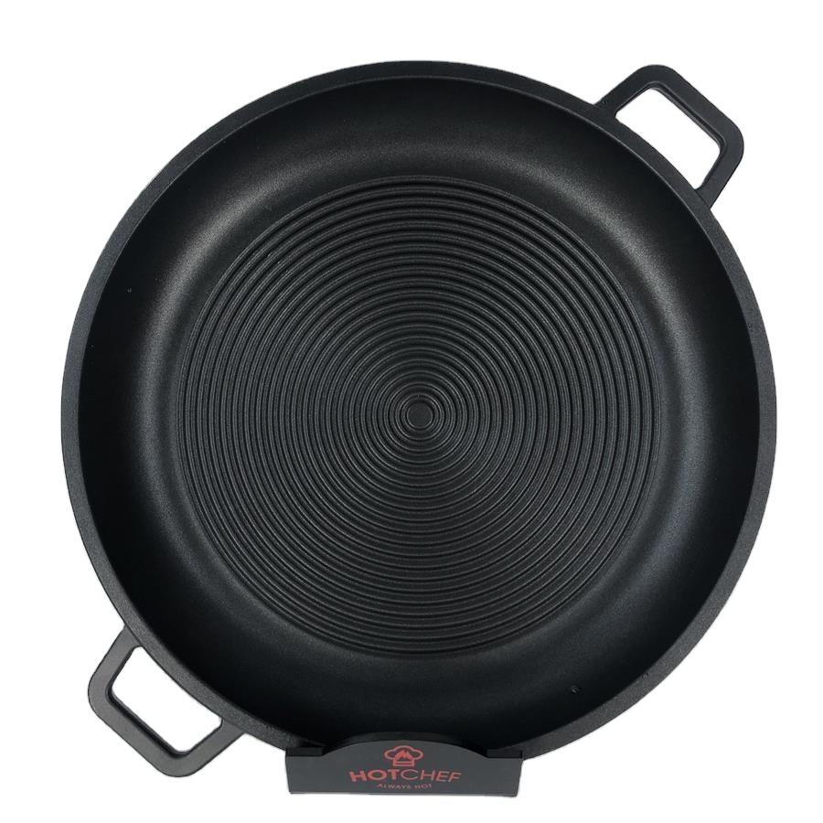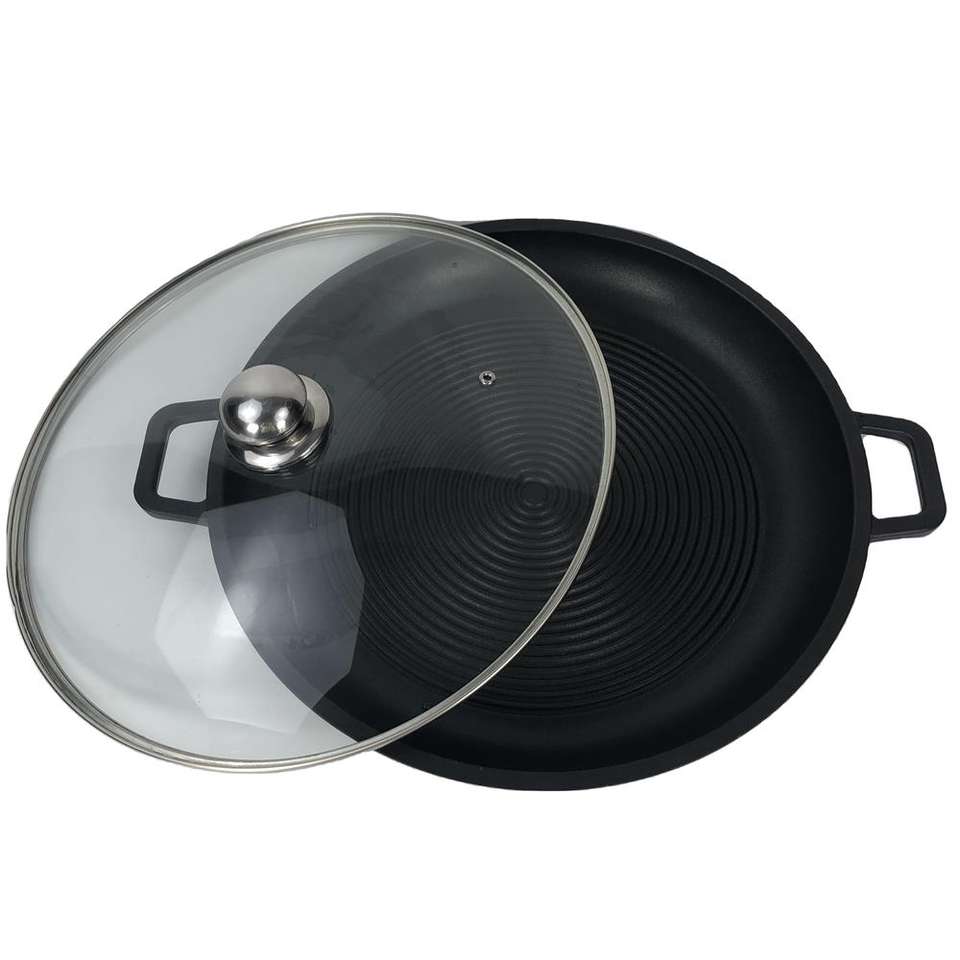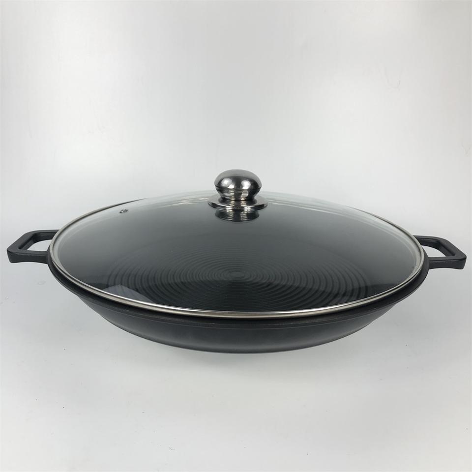 Paellera redonda antiadherente de aluminio fundido con tapa, sartén antiadherente para Pizza, bandeja de hornear para cocina casera, 34/36 Cm