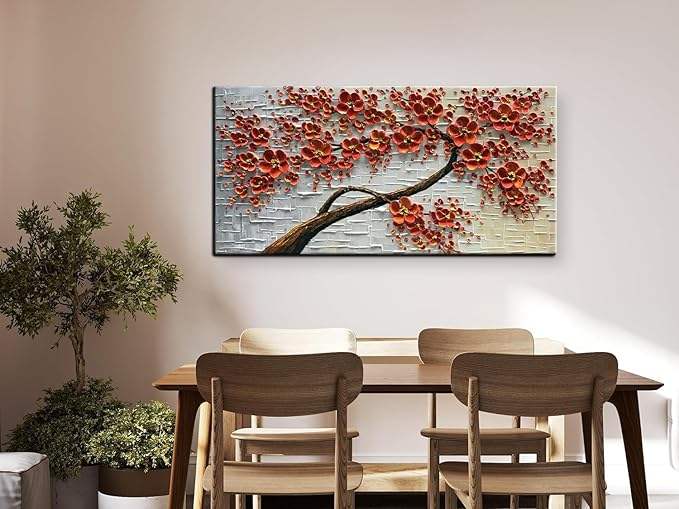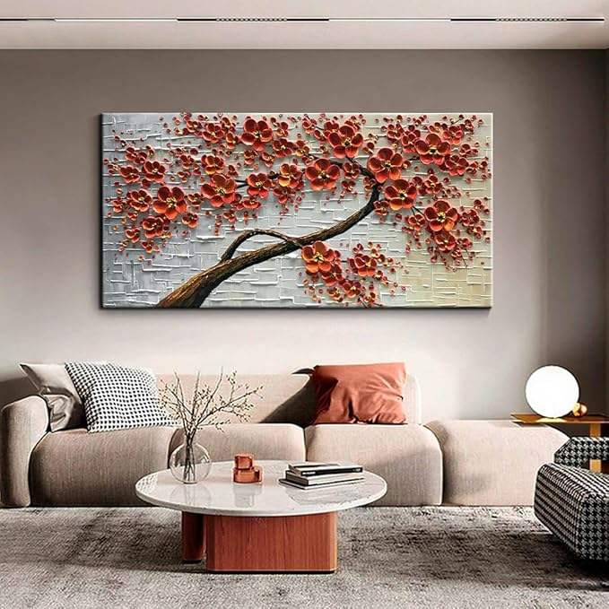 Cuadro Abstracto Floral Texturizado en 3D, Arte de Pared para Sala de Estar, Pintura al Óleo sobre Lienzo Pintada a Mano, Arte de Pared para Dormitorio D