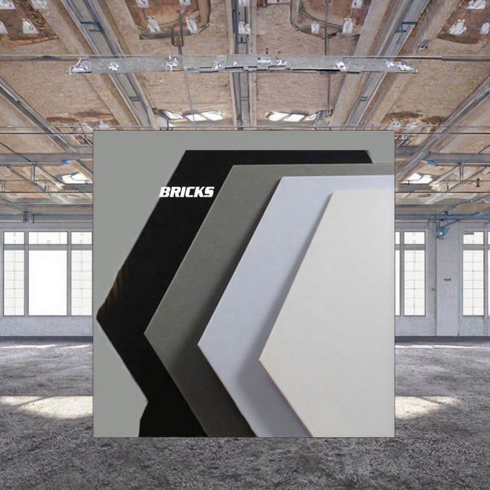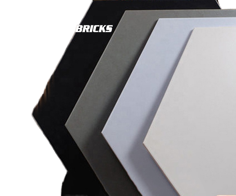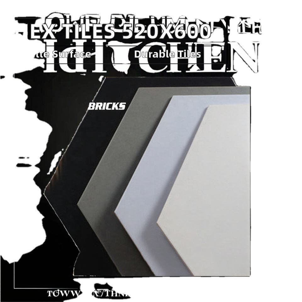Azulejos de Piso Cerámicos Mate Hexagonales Grandes de 520x600, Antideslizantes, Resistentes al Desgaste y a los Ácidos, Textura Sólida, Negro Blanco, Ladrillo Refractario