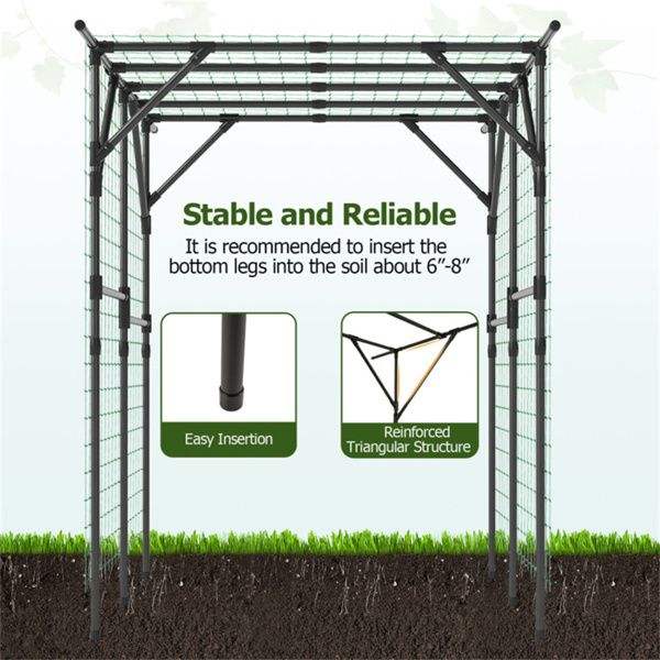 Arco de jardín de metal grande de 79"x59"x78" con revestimiento de PE, resistente al óxido, para enredaderas trepadoras y soporte de plantas