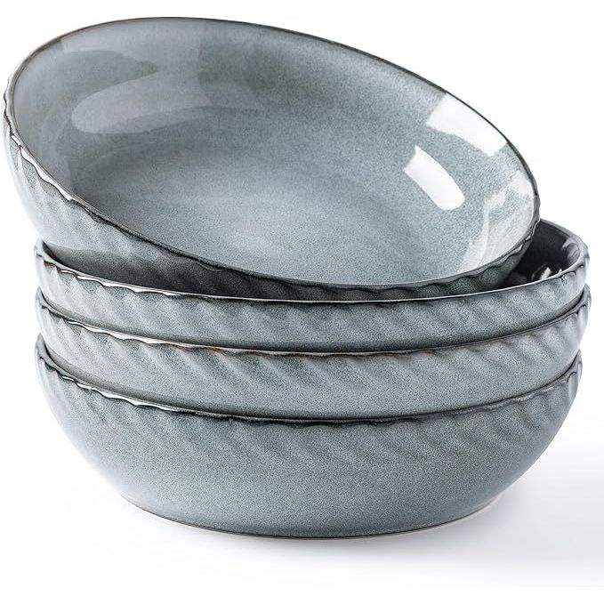Tazones Grandes de Gres para Pasta y Ensalada de 8.5 Pulgadas, Tazones de Cerámica de 38 Onzas con Patrón Texturizado para Uso en la Cocina