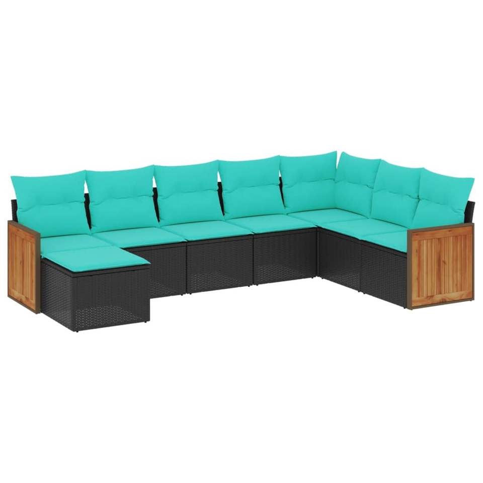 Conjunto de Sofá de Jardín de Ratán PE Negro con Patas Ajustables Grandes