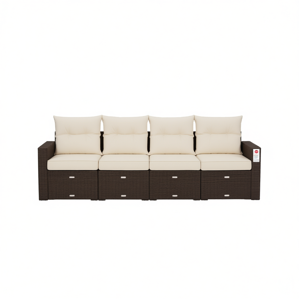 Conjunto de Sofá de Jardín de Ratán Marrón, 4 Plazas, Patas Ajustables, Muebles de Exterior, Diseño Contemporáneo