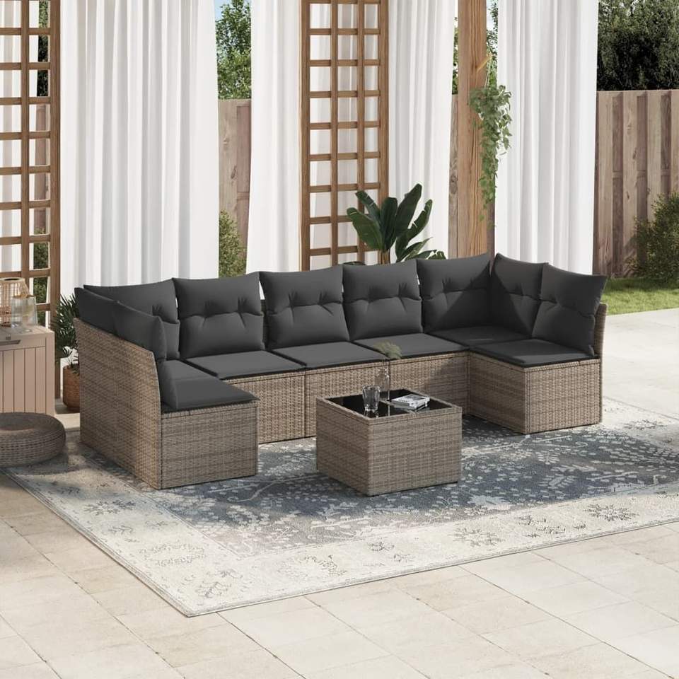 Pies ajustables grandes gris PE ratán jardín sofá conjunto pies ajustables conjuntos de jardín