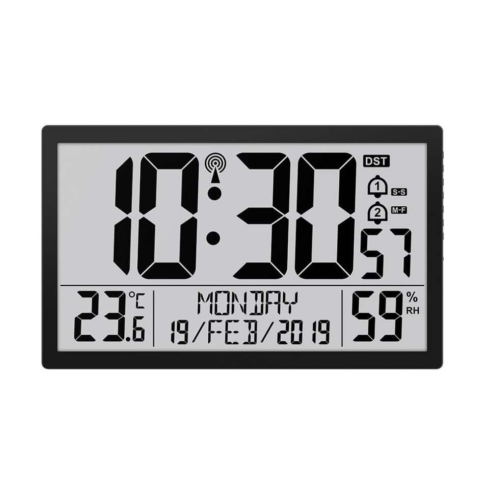 Reloj Despertador Grande, Reloj de Pared con Radio LCD, Pantalla de Temperatura y Humedad, Función de Repetición, Calendario, Reloj de Pared Digital de 15'4 Pulgadas con Pantalla Grande