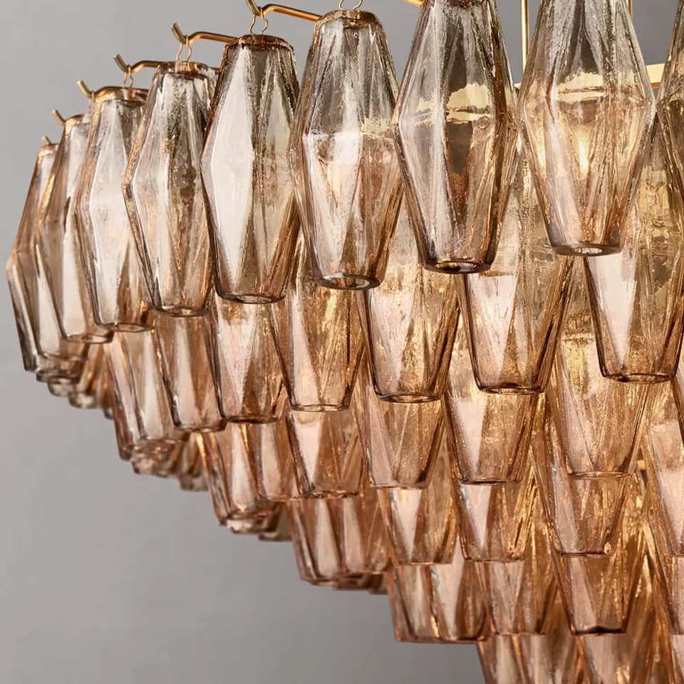Lámpara de araña redonda de cristal ahumado de diseño americano grande para villa, hotel, lujo, alta gama, de cristal soplado a mano, moderna, de 46 pulgadas.