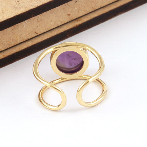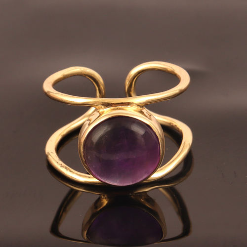 Anillo de cóctel de piedras preciosas de amatista grande, solitario de diseñador de doble banda para piedra natal de febrero para boda