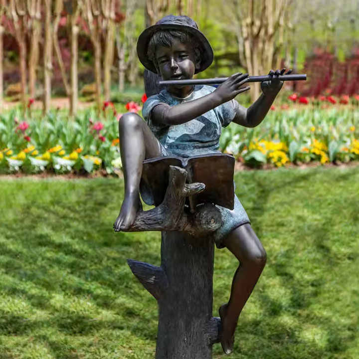 Nombre:Jardín tamaño natural bronce hermosa música dama tocando flauta estatua