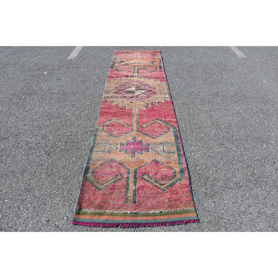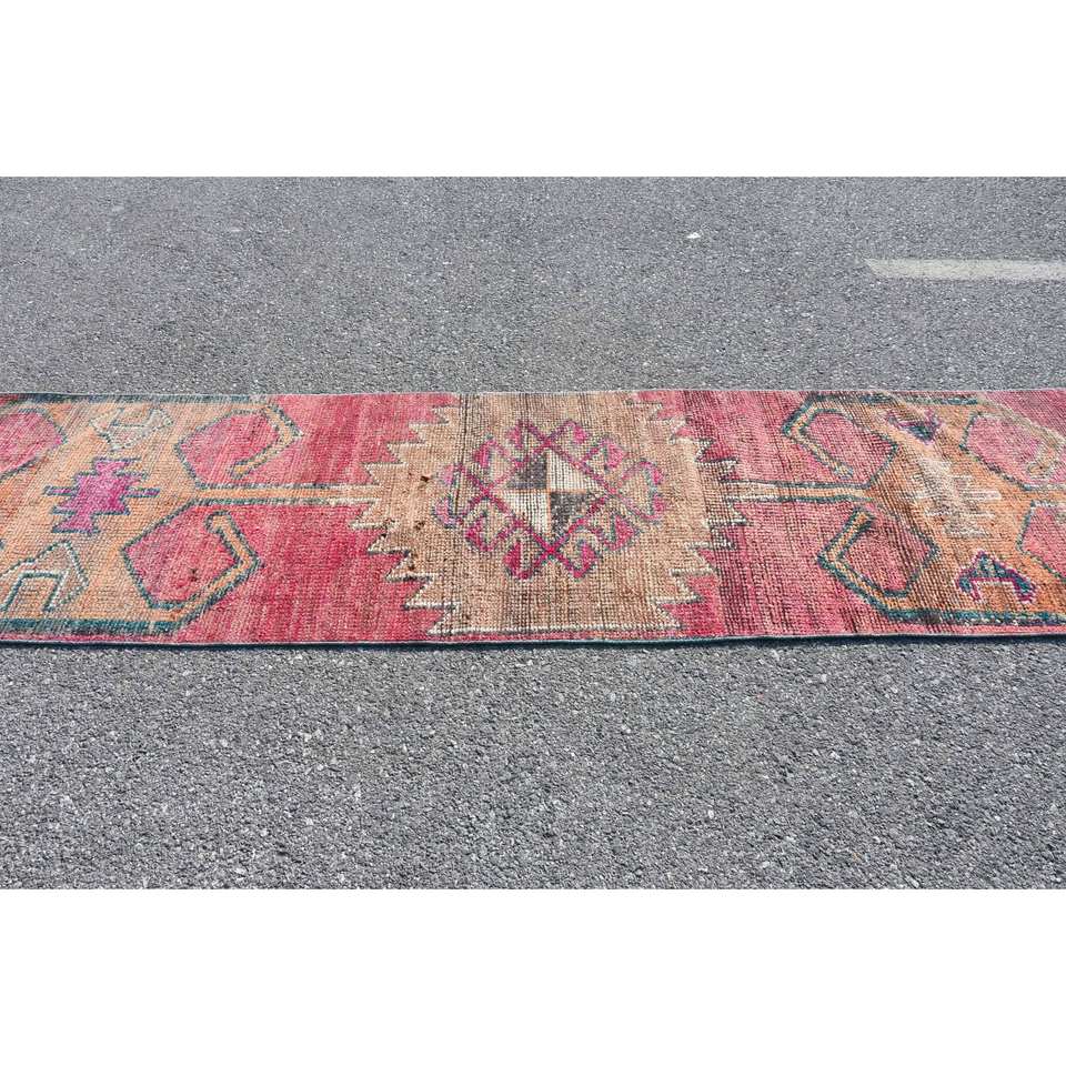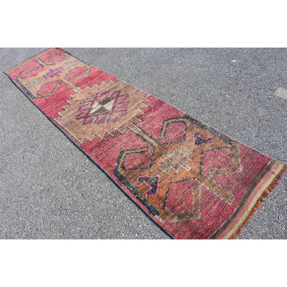 Alfombra Kilim de área grande, color rojo y beige, 2,6x10,6 pies, tejido plano, lana turca con respaldo de látex para pasillo, habitación, pila de felpa rectangular