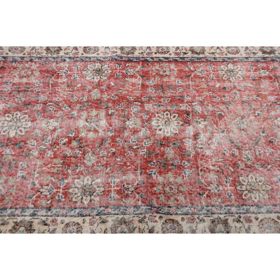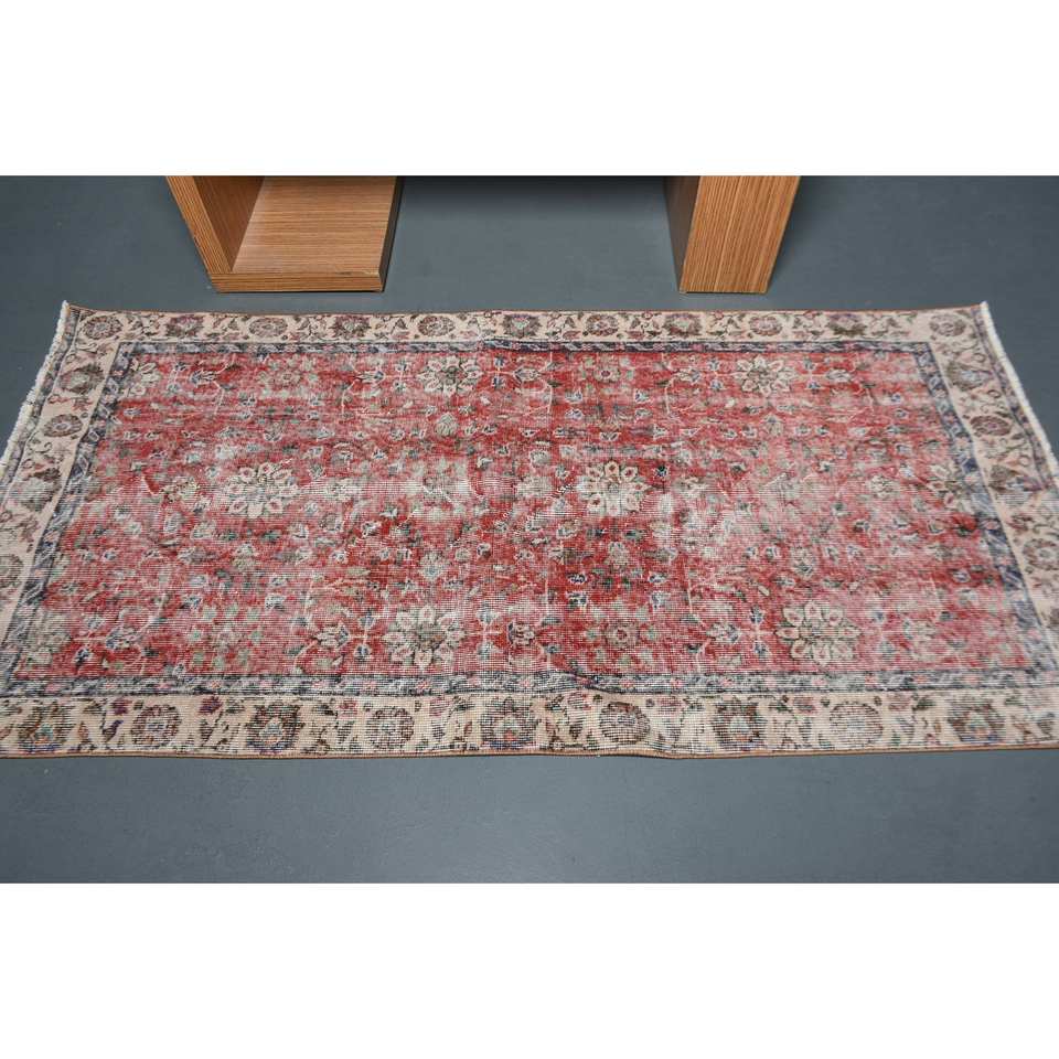 Alfombra turca de área grande tradicional rojo Beige 3,3X6,8 pies Piel de lana látex rectángulo diseño de retazos abstractos para habitación de pasillo
