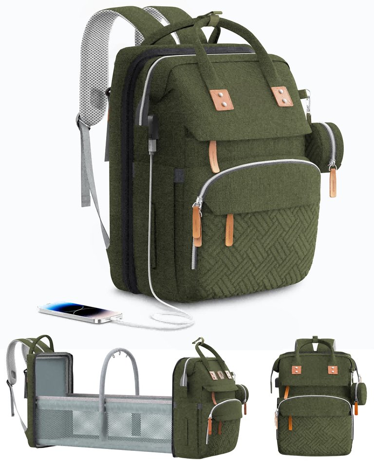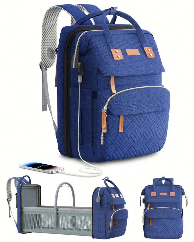 Bolsa de Pañales Grande con Cambiador, Bolsa de Pañales Impermeable, Mochila de Viaje con Puerto USB