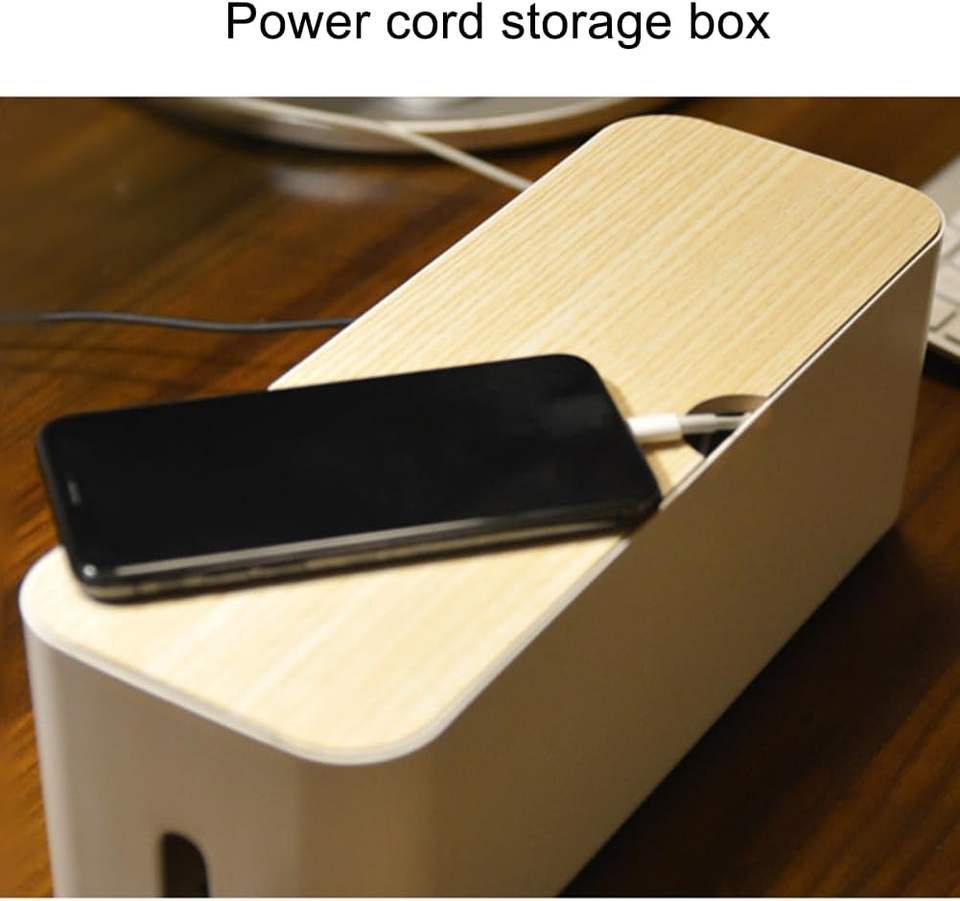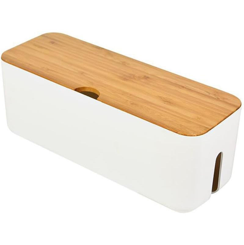 Caja grande rectangular de bambú para gestión de cables, organizador de regletas con técnicas de tallado para ocultar cables en el hogar y almacenamiento de botiquín médico