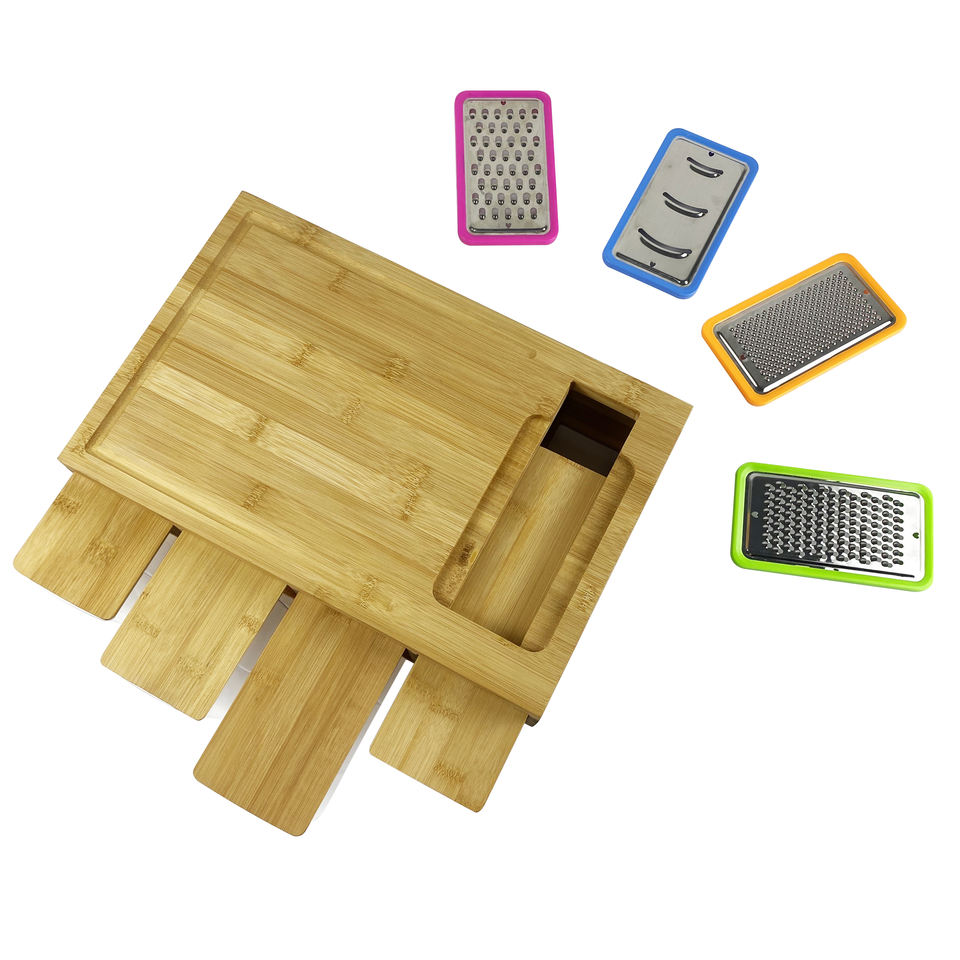 Nombre del producto:Tabla de cortar de bambú grande con 4 cajones y tapas para Cocina
