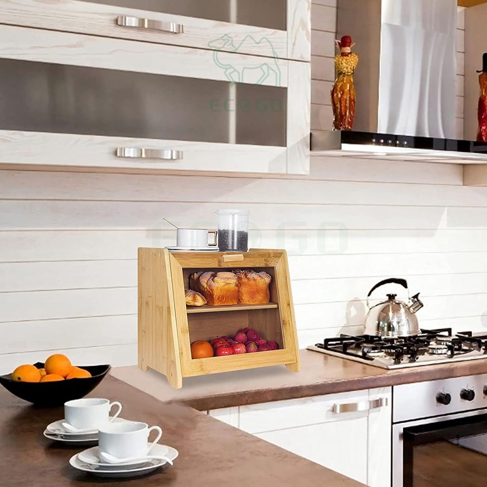Caja de Pan grande de madera de bambú con ventana frontal transparente, Cubo de pan estilo granja para encimera de cocina, pan de doble capa