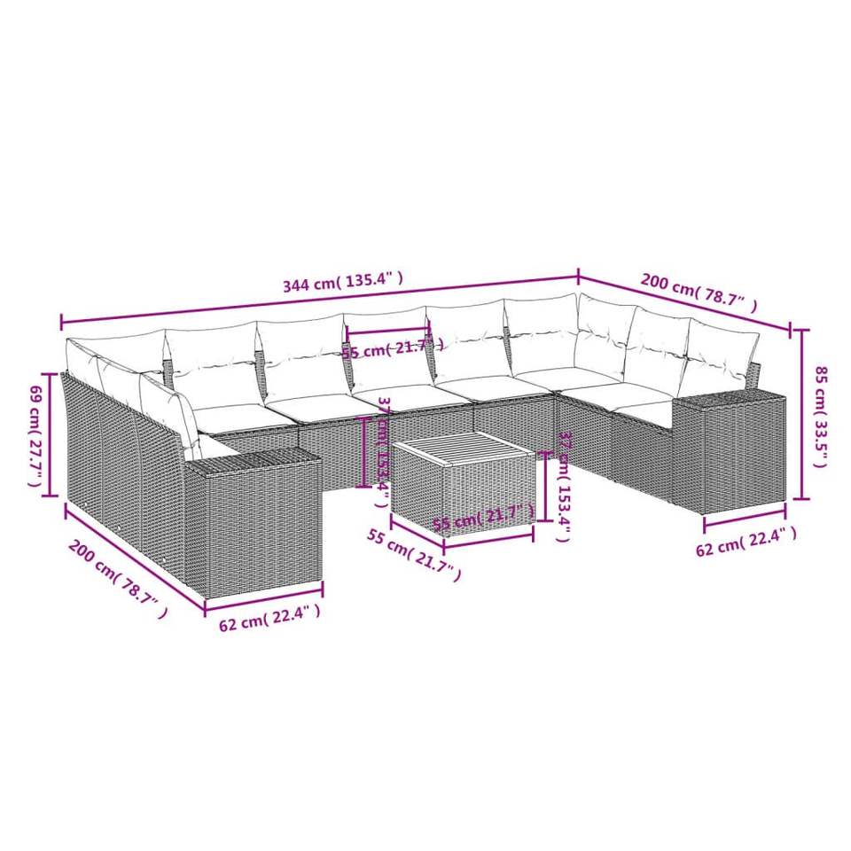 Elegante Conjunto de Sofás de Jardín de Ratán Sintético Negro Grande, Muebles de Jardín para Exteriores
