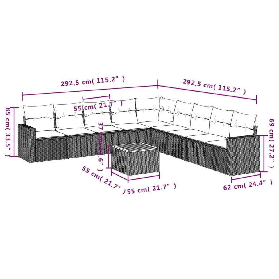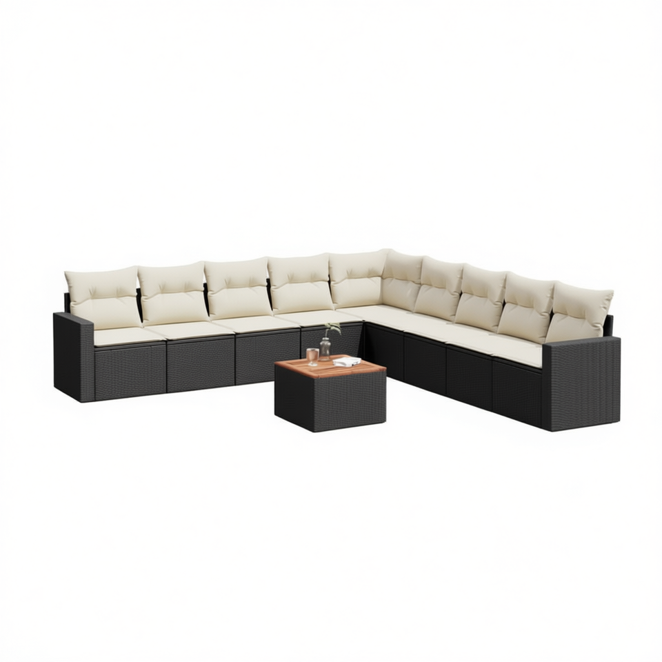 Conjunto de Sofá Grande para Jardín de Poliratán Negro con Fundas Extraíbles, Muebles de Exterior de Diseño Moderno con Cojines de Espuma de Alta Densidad