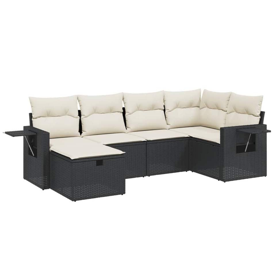 Conjunto de Sofás de Jardín Grandes de Ratán Sintético Negro y Acero con Recubrimiento en Polvo