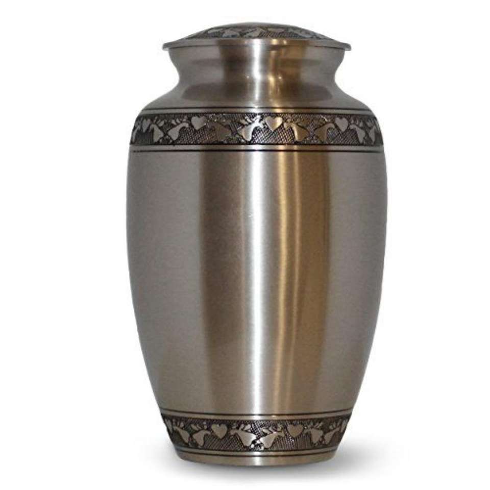 Urna negra grande, banda de grabado Floral plateado, urnas de cremación de Metal para cenizas, suministros funerarios para adultos, urna de cremación humana personalizada