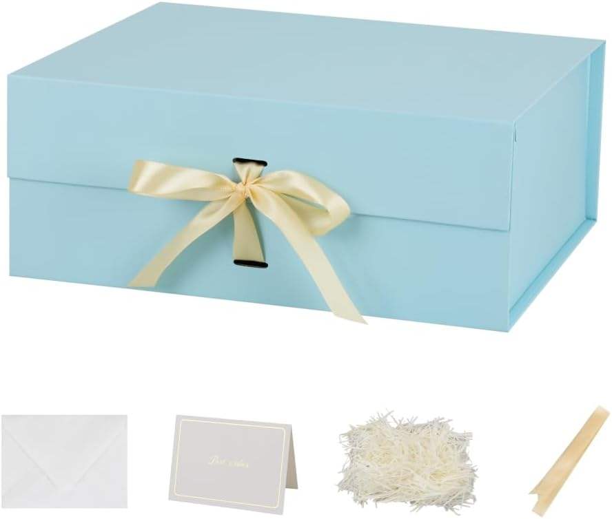 Large Blue Magnetic Closure Gift Box with Ribbon and Lid