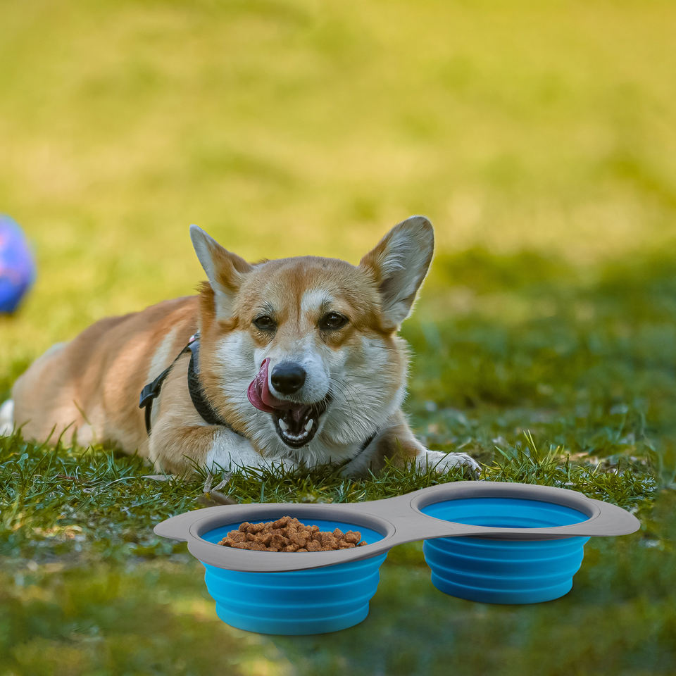 Cuenco plegable para perros con forma de hueso grande-Comedero doble de silicona plegable de tamaño extra para viajes de razas grandes