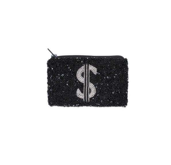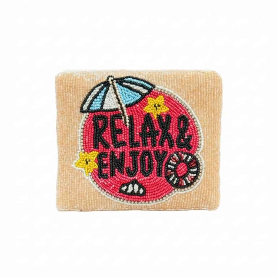 Monedero Grande de Lona con Patrón Geométrico, Diseño Hecho a Mano con Cuentas, Cierre de Cremallera Seguro, Ecológico y Duradero