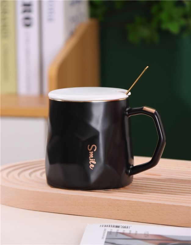 Tazas de Porcelana de Gran Capacidad de 12 oz para Desayuno, Tazas Personalizadas para Beber, Tazas y Jarras al por Mayor, Taza de Café con Tapa y Cuchara