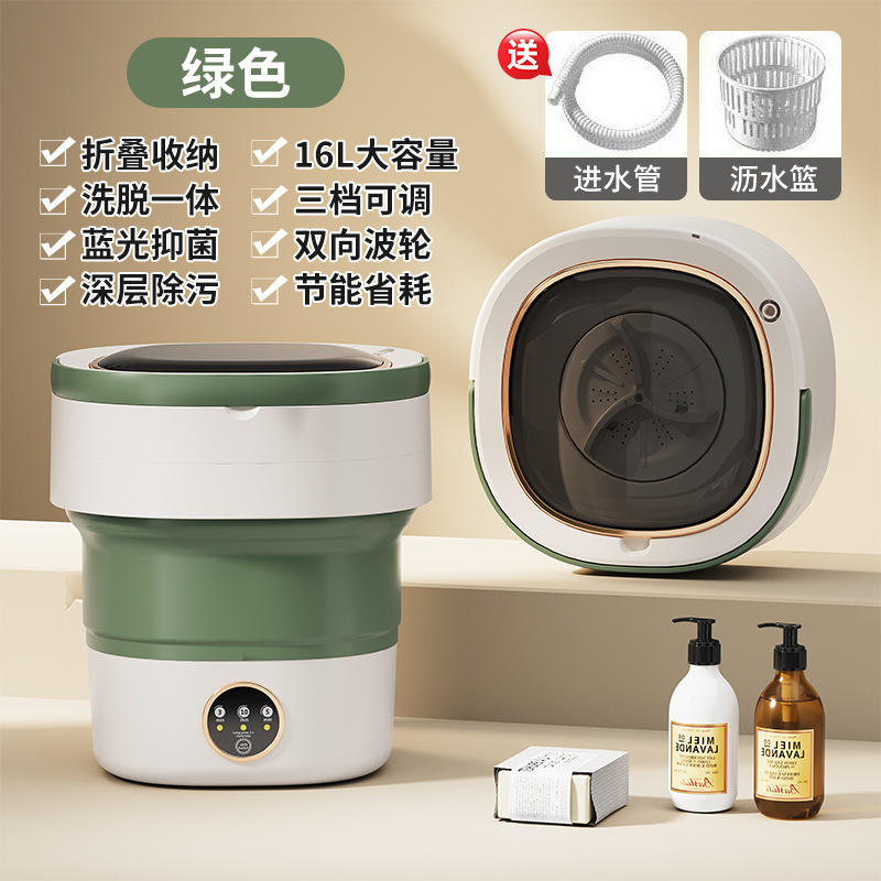 Lavadora Portátil Mini de Gran Capacidad (16L), de Plástico Azul, Plegable, con Cesta de Deshidratación y Pantalla Táctil