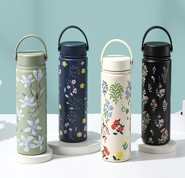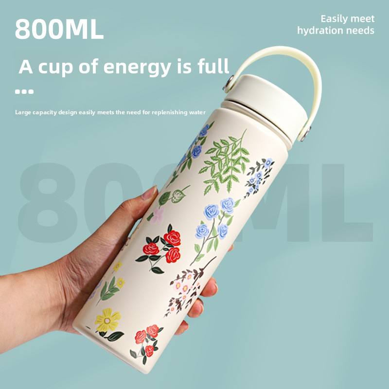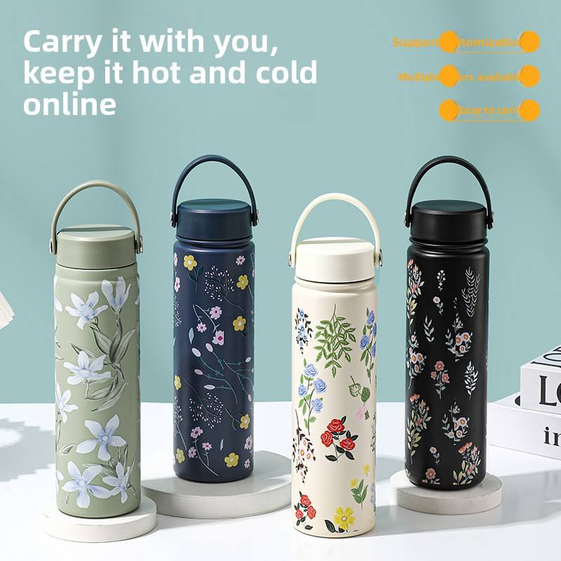 Botella de Agua Deportiva Aislada de Acero Inoxidable 304 de Gran Capacidad, Nueva, Portátil, con Diseño Impreso, para Viajes Clásicos