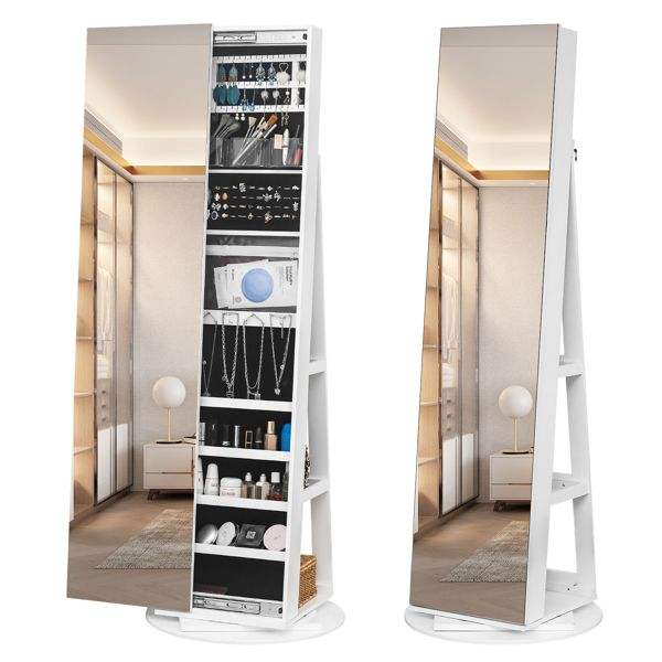 Armario para Joyas con Espejo de Cuerpo Entero de 360 Grados y Gran Capacidad, Organizador con Cerradura y Solución de Almacenamiento Premium