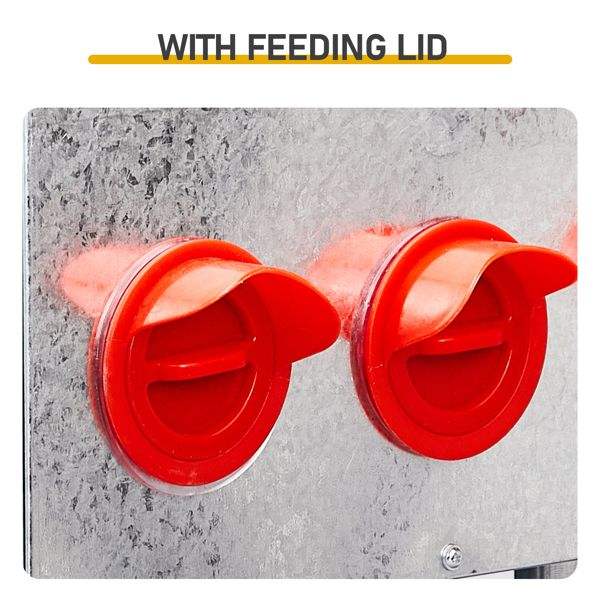 Comedero Automático para Pollos Galvanizado de Gran Capacidad con 6 Puertos, Comedero para Aves de Corral con Patas a Prueba de Roedores, Tapa Recubierta de Zinc, Comederos para Animales