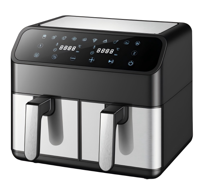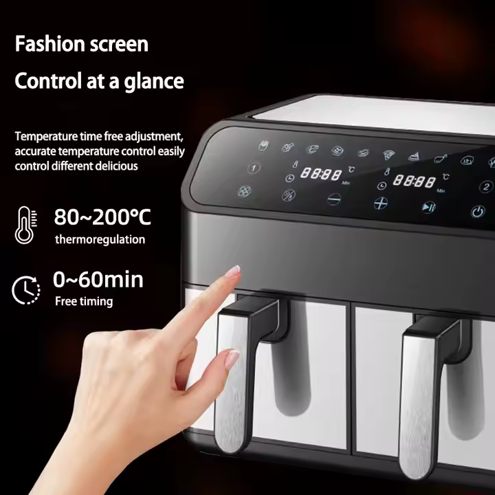Freidora de aire eléctrica inteligente de 8l de gran capacidad, cesta doble de acero inoxidable multifuncional, Cuadrado francés antiadherente sin humo