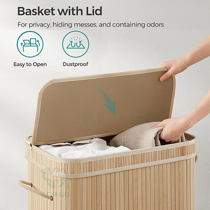 Cesto de Ropa de Bambú Ecológico de Gran Capacidad con Tapa y Asas para Organizar la Ropa en el Baño Moderno