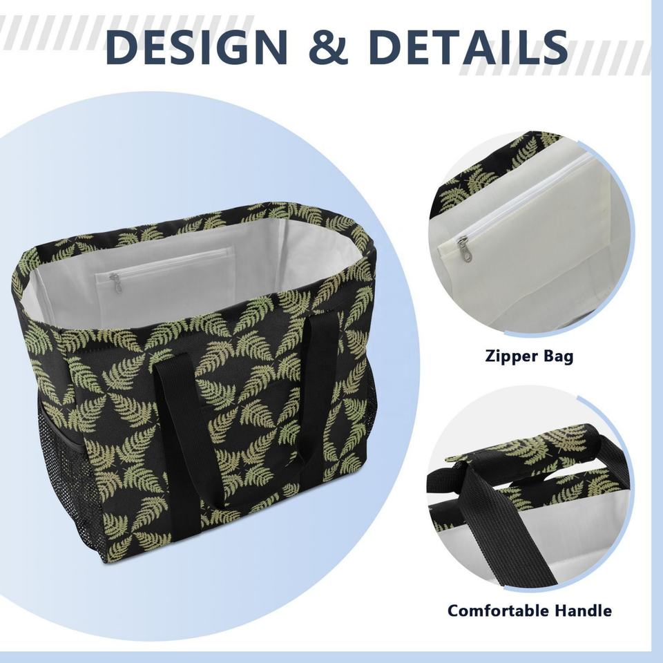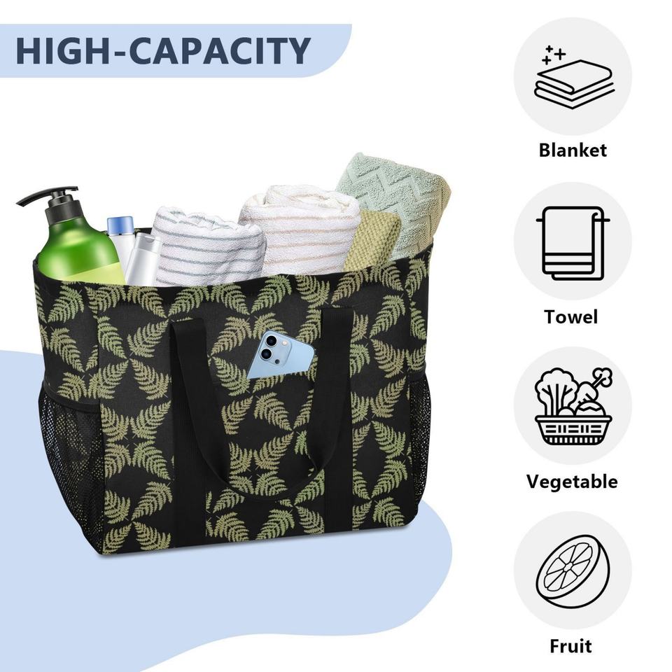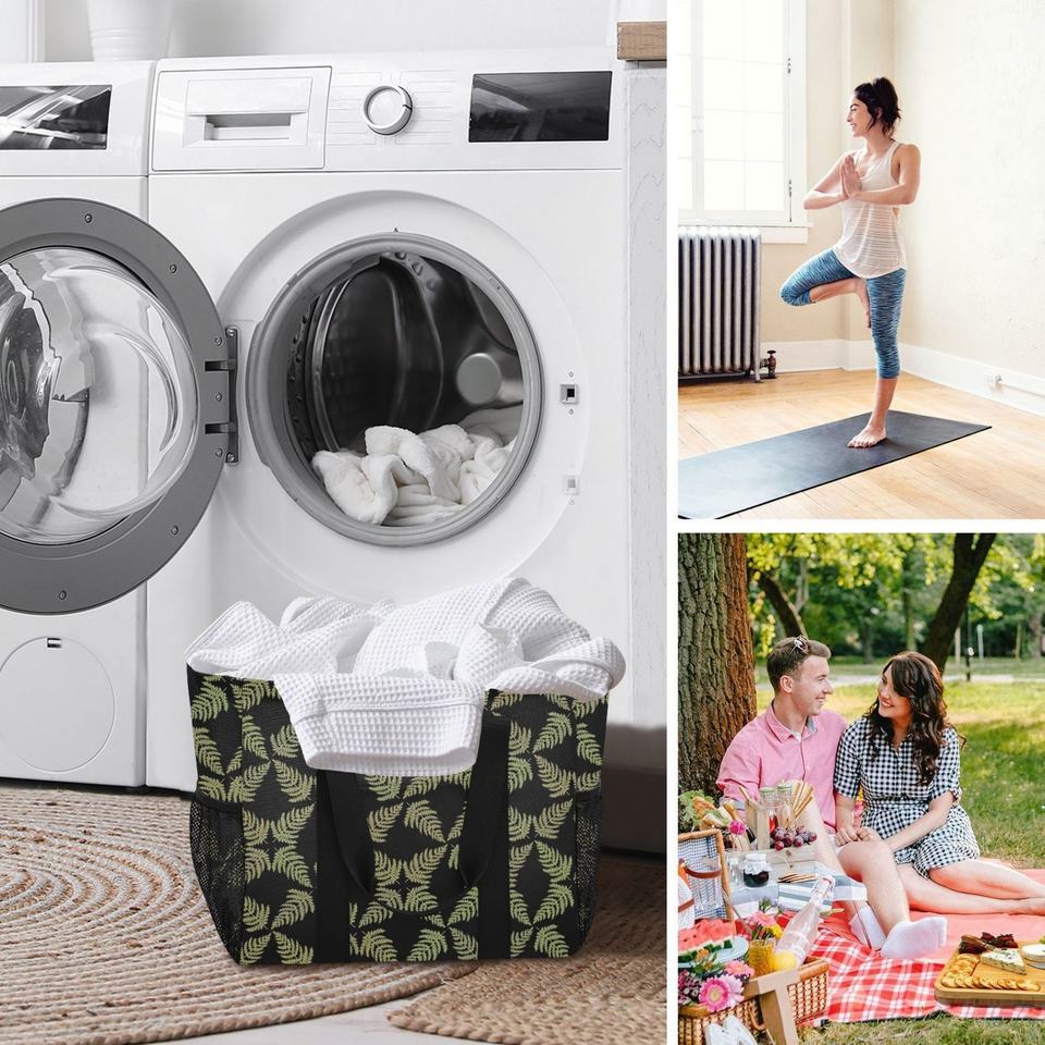 Bolsa de Playa de Gran Capacidad, Diseño Personalizado, Diseño Hawaiano con Estampado de Helecho, Bolsa para Ropa Sucia, Cesto Plegable para Ropa Sucia