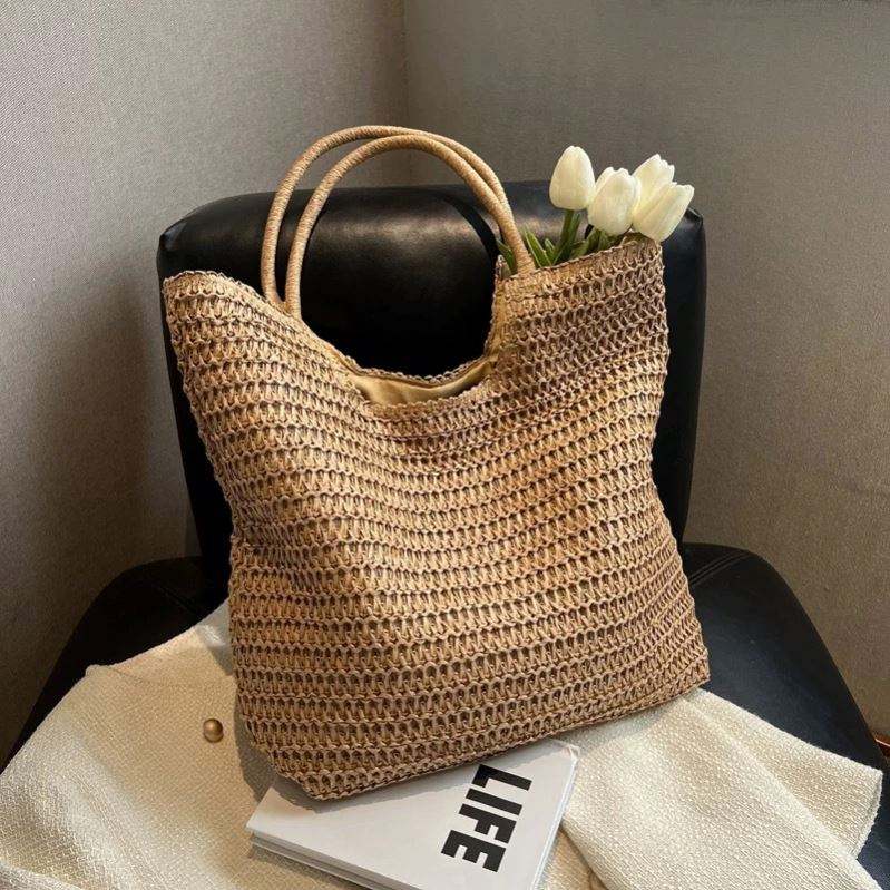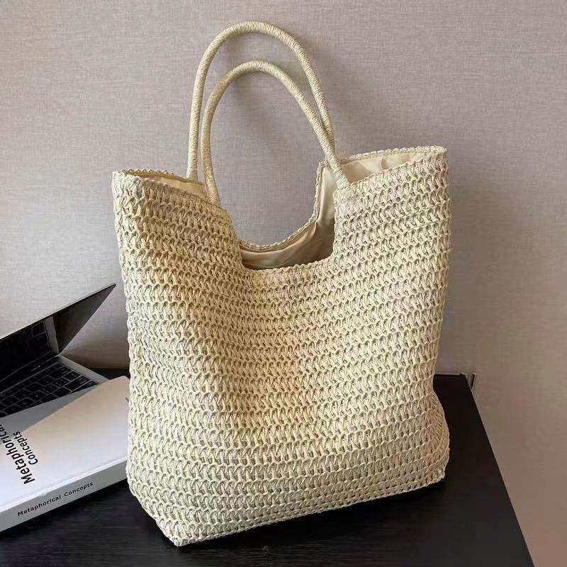Bolsa de Playa de Gran Capacidad con Logotipo Personalizado, Bolso de Mano Tejido de Papel para Vacaciones en la Playa, Bolso de Hombro de Paja para Mujer para el Verano