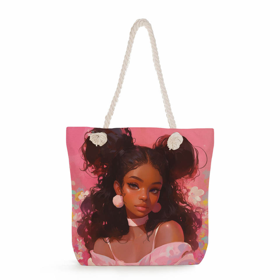 Bolso de mano con estampado de Hermanas negras de gran capacidad, Serie de novio a la moda, bolso de playa con cremallera, cuerda gruesa, nuevo producto, señoras con estilo