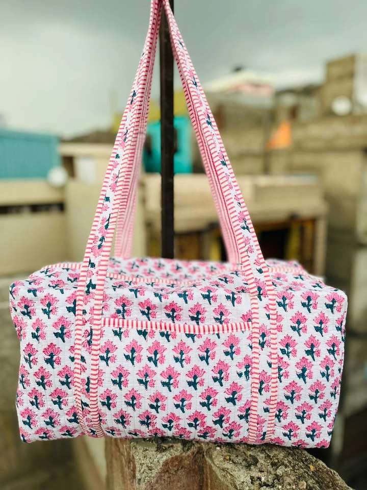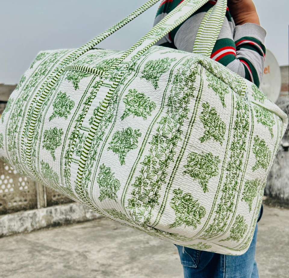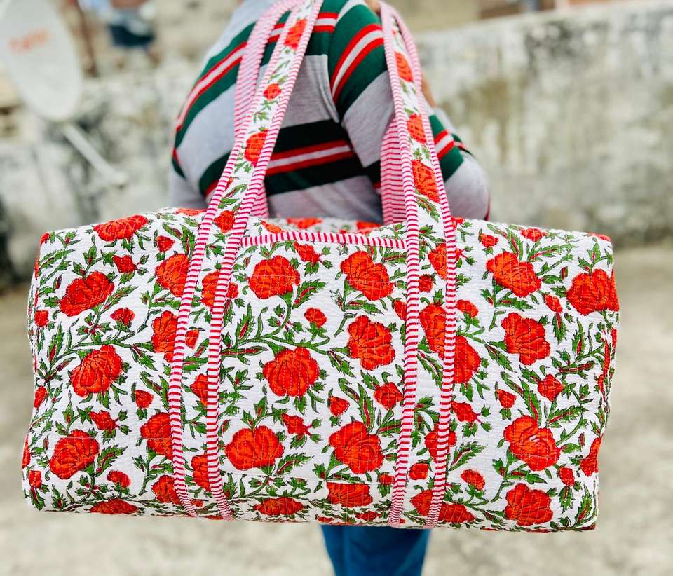 Bolsa de Viaje Acolchada de Algodón con Estampado de Bloques de Gran Capacidad, Elegante y Moderna Bolsa de Lona Acolchada para Fin de Semana o Viajes Cortos para Mamá