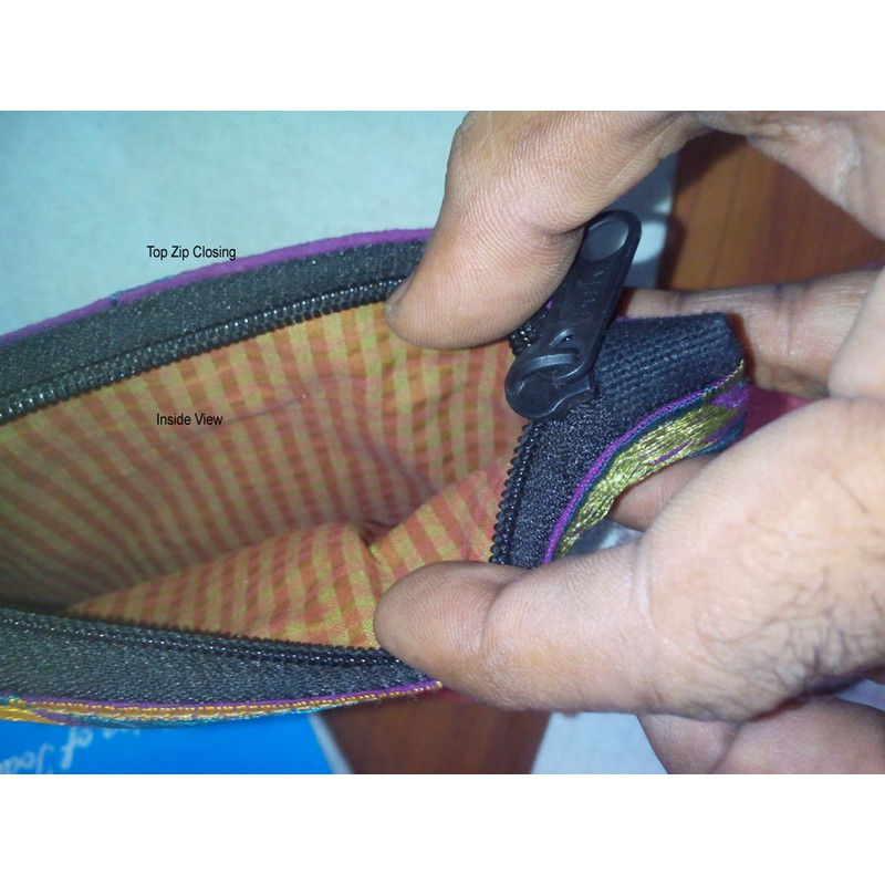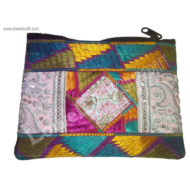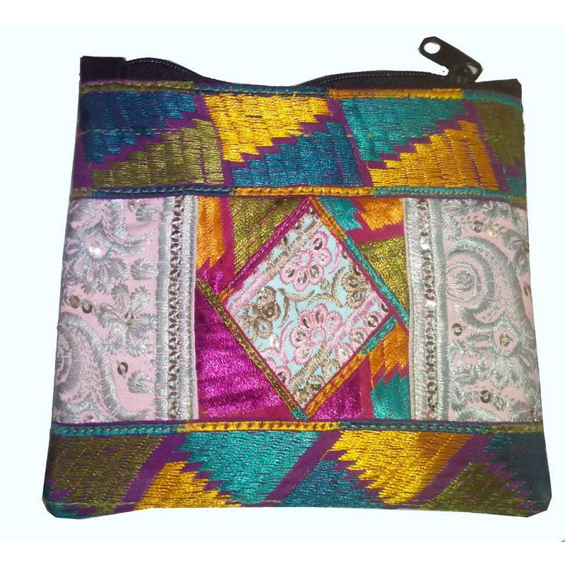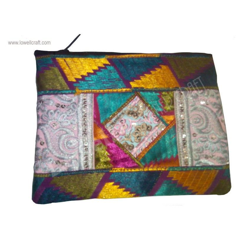 Embrague de algodón de gran capacidad colorido estilo bohemio bordado espejo detalle cremallera diseño étnico festivo portátil