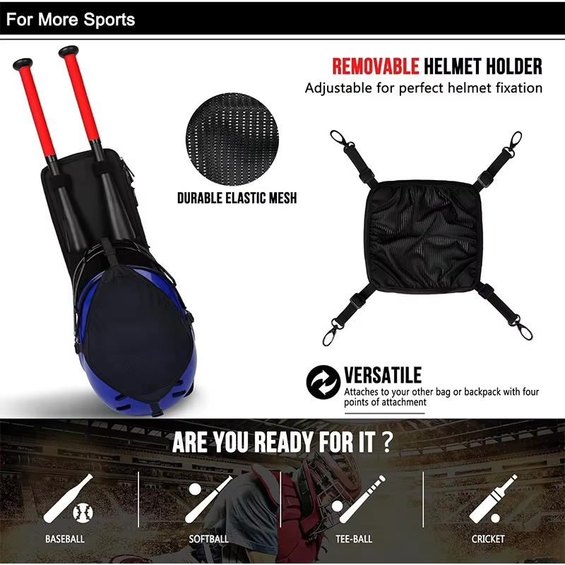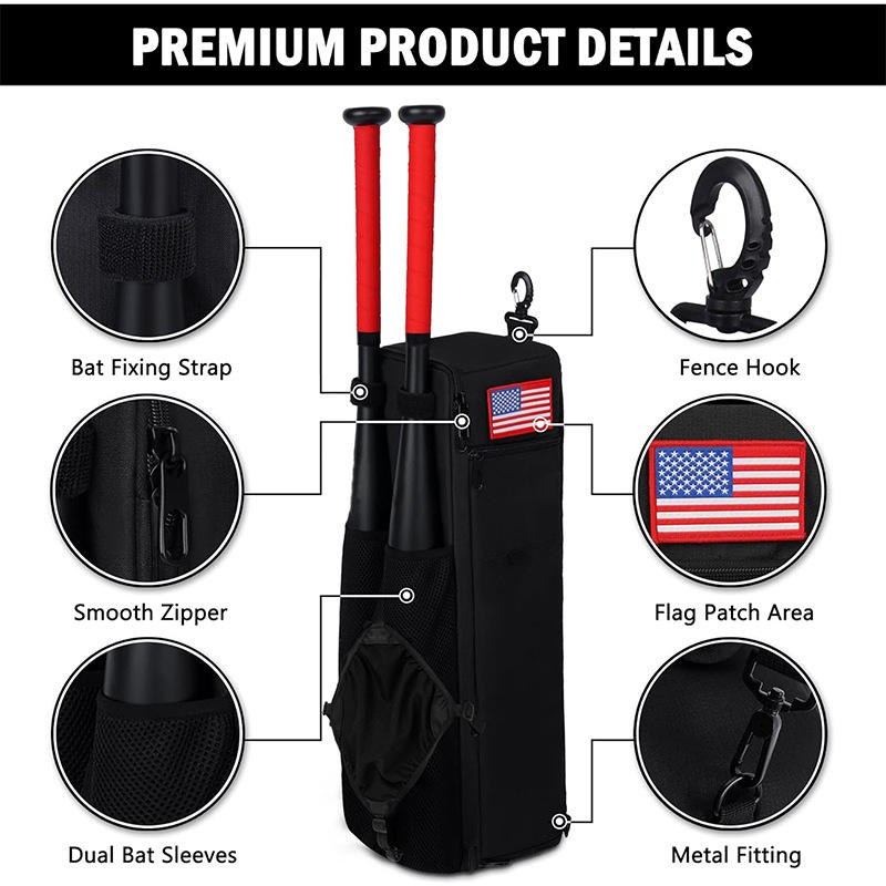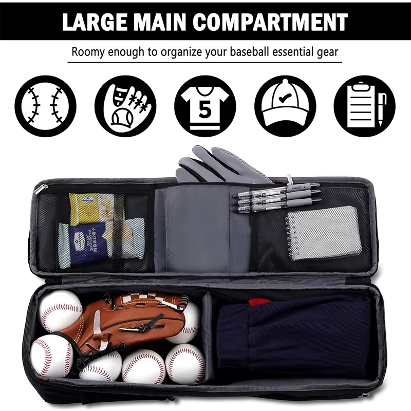 Mochila Deportiva Multifuncional de Gran Capacidad Personalizada en Color Negro para Hockey y Béisbol