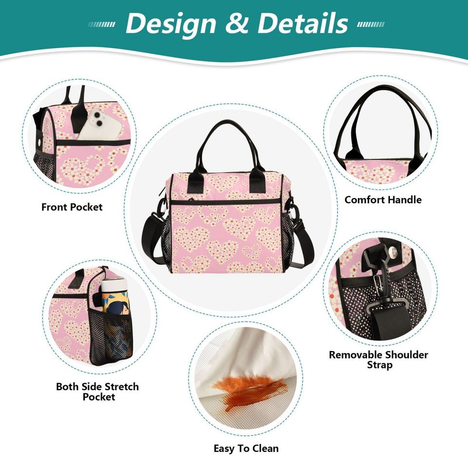 Bolsa de Almuerzo de Poliéster Rosa Hawaiano con Impresión Personalizada de Gran Capacidad, Cómoda de Llevar y Reutilizable