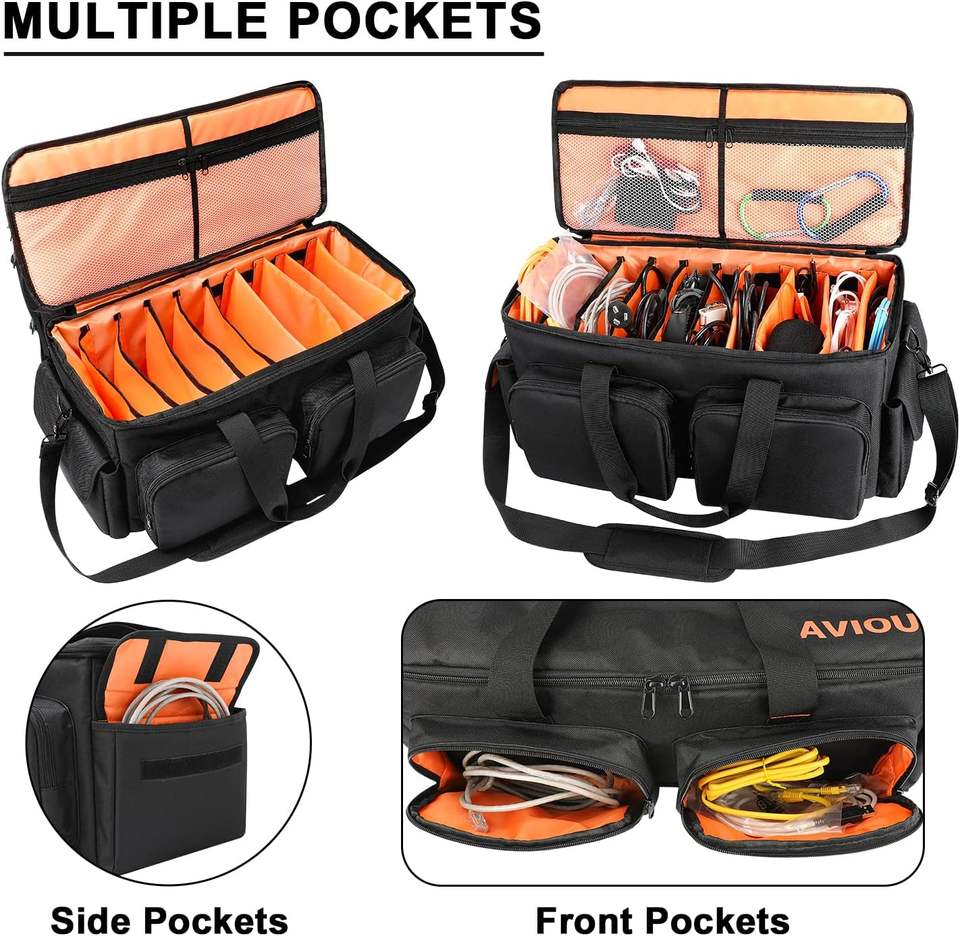 Bolsa de Transporte para DJ de Gran Capacidad con Divisores Desmontables y Función de Almacenamiento, Bolsas de Viaje para Cables y Archivos