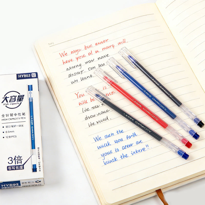 Bolígrafos de Gel de Gran Capacidad con Tinta Líquida Directa | Punta de tubo completo de 0.5 mm con cuentas de carburo de tungsteno, negra/roja/azul para oficina, exámenes