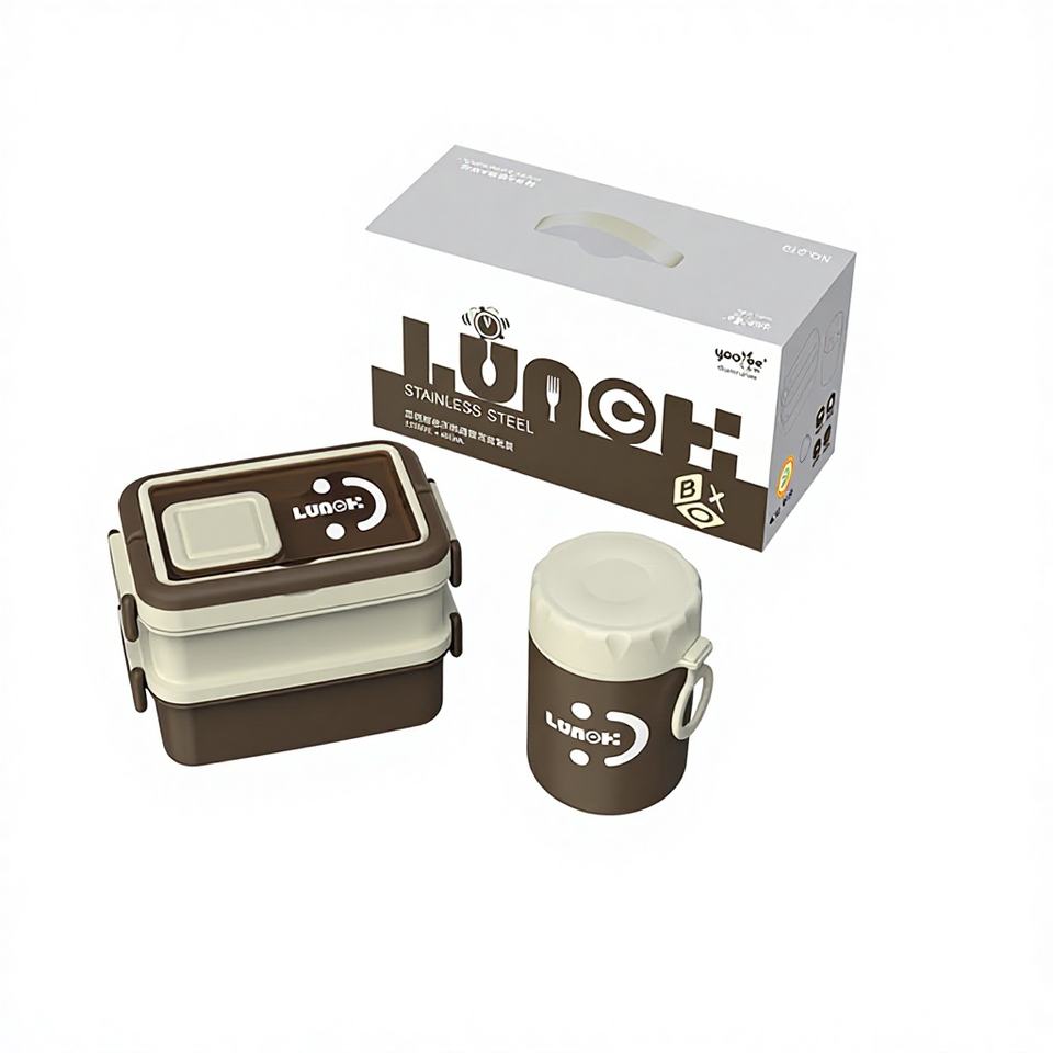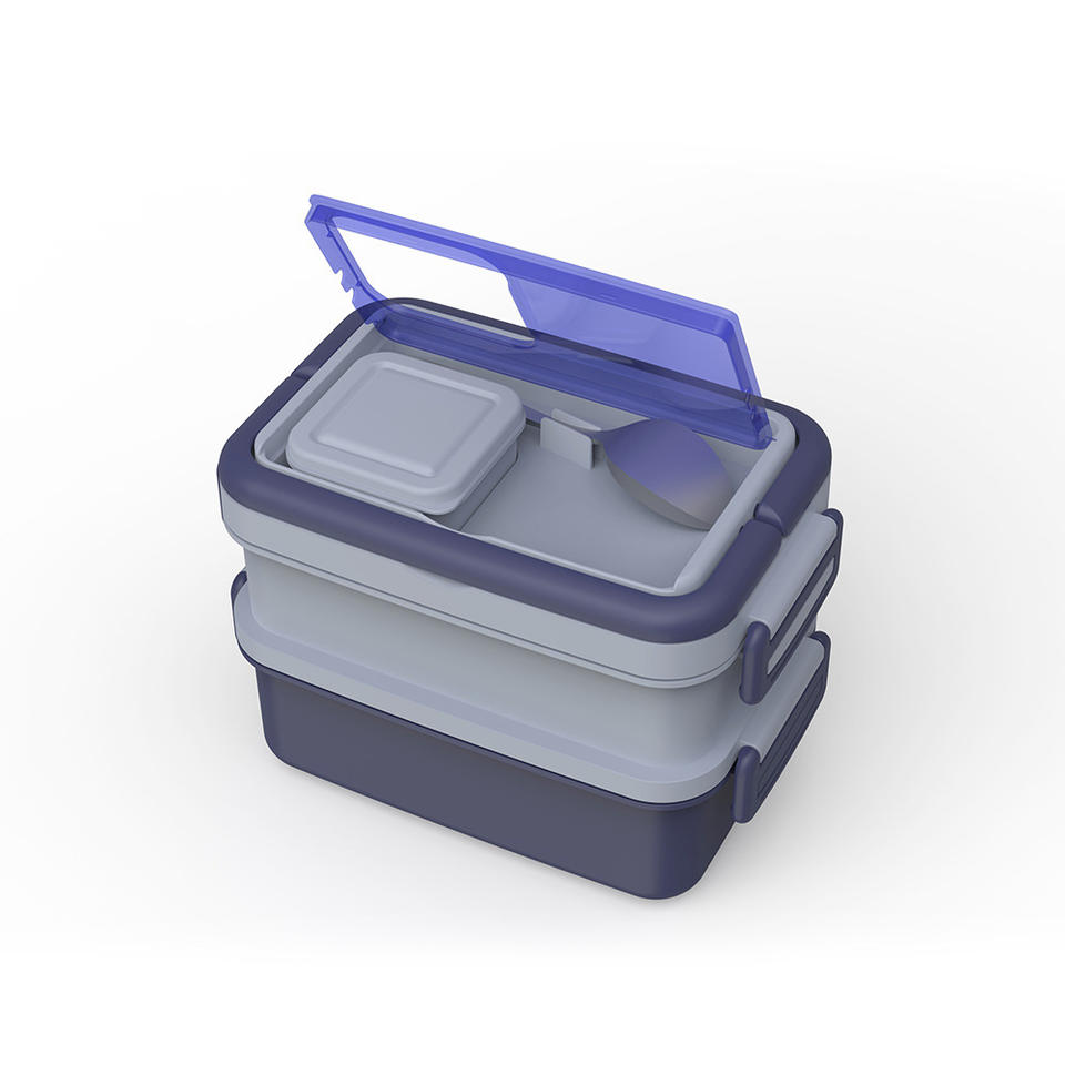 Lonchera de PP de Gran Capacidad de Dos Niveles con Tapa de Plástico Aislada, Portátil, de un Solo Compartimento, a Prueba de Fugas, Rectangular