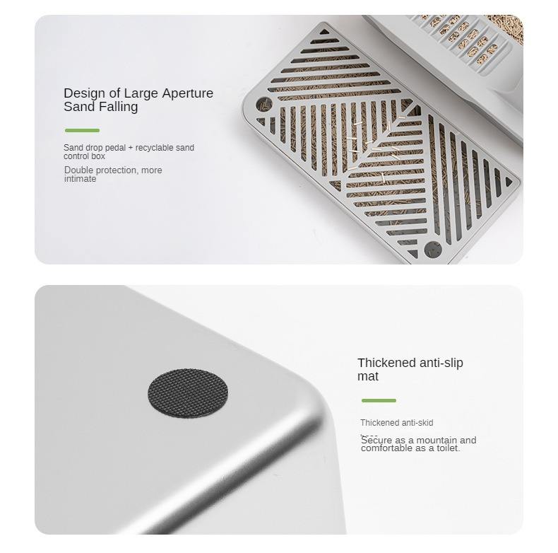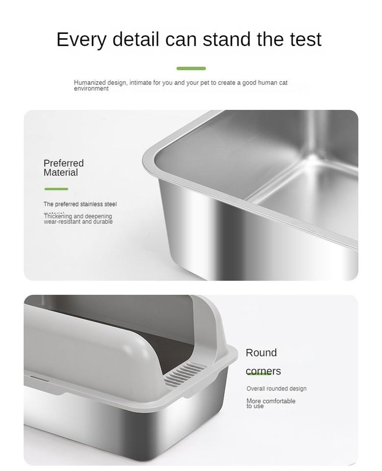 Caja de arena para gatos de gran capacidad, bandeja de acero inoxidable semicerrada con lado alto, caja de arena para gatos con cuchara, inodoro para mascotas