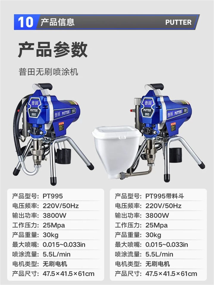 Pulverizador Eléctrico sin Aire de Gran Capacidad, Motor sin Escobillas de 4500W, Bomba para Pintar Casas, 220V, Revestimiento de Paredes Exteriores y Techos