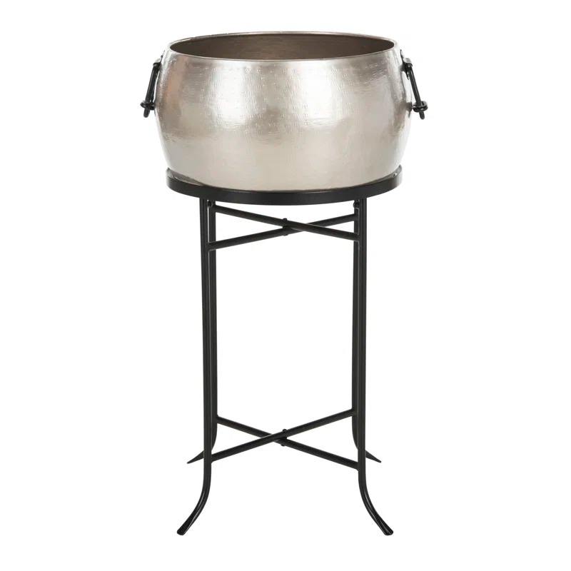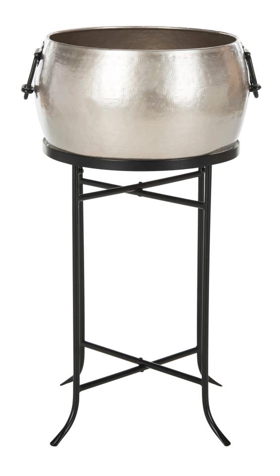 Estación de hielo de gran capacidad para exteriores, elegante bañera redonda plateada para fiestas.