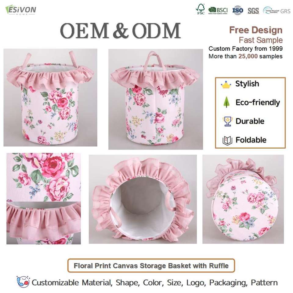 Nombre del producto:Cesta de almacenamiento de lona con estampado floral
