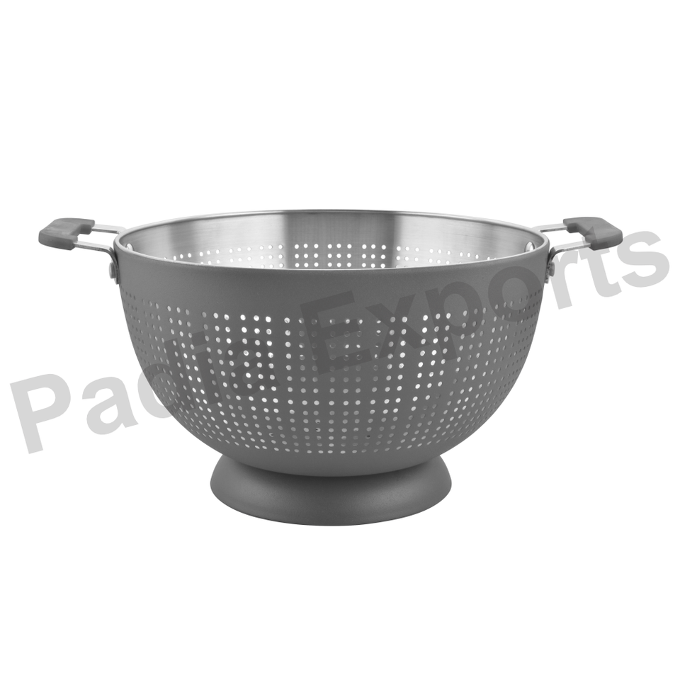 Colador gris de gran capacidad, colador de cocina tamaño 3 con mango de acero inoxidable, construcción metálica