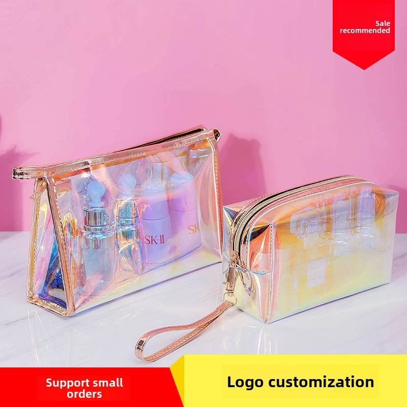 Estuche de TPU iridiscente láser de gran capacidad, almacenamiento portátil de alta estética con cremallera, pequeño neceser multifuncional, Neceser de maquillaje